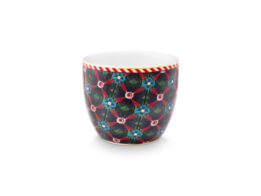 Kalíšek na vajíčko z této kolekce má zeleno-modrý dlaždicový motiv, který se objevuje také na konvici, dóze nebo hrnečcích. Díky tomu spolu všechny kousky Berry Blues krásně ladí. Kolekci lze skvěle kombinovat s porcelánem Love Birds nebo Pip Chique Green. Pokud ovšem toužíte po osobité a originální kombinaci, zkuste kolekci La Majorelle . Slunečně žluté tóny se překvapivě krásně doplňuji s tmavě modrou kolekci Berry Blues a vytvářejí výrazný, ale harmonický celek. Dlaždicový motiv ve tvaru čtyřlístku dodává této kombinaci jedinečný dekorativní charakter.