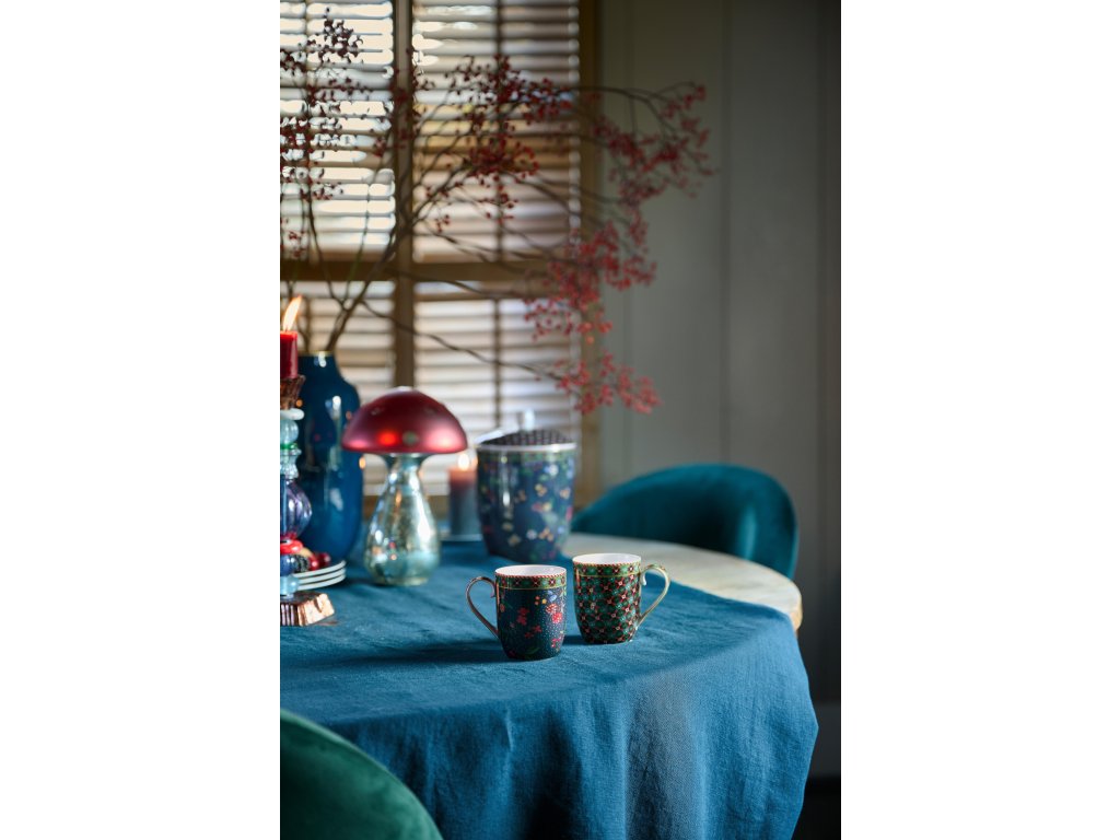 Sada hrnečků obsahuje dva šálky – jeden zdobený jemnými kvítky a druhý s dlaždicovým motivem. Oba hrnky k sobě dokonale ladí a vytvářejí harmonický pár. Kolekce Berry Blues se krásně kombinuje s porcelánem Love Birds nebo Pip Chique Green. Pokud ovšem toužíte po osobité a originální kombinaci, zkuste kolekci La Majorelle . Slunečně žluté tóny se překvapivě krásně doplňuji s tmavě modrou kolekci Berry Blues a vytvářejí výrazný, ale harmonický celek. Dlaždicový motiv ve tvaru čtyřlístku dodává této kombinaci jedinečný dekorativní charakter.