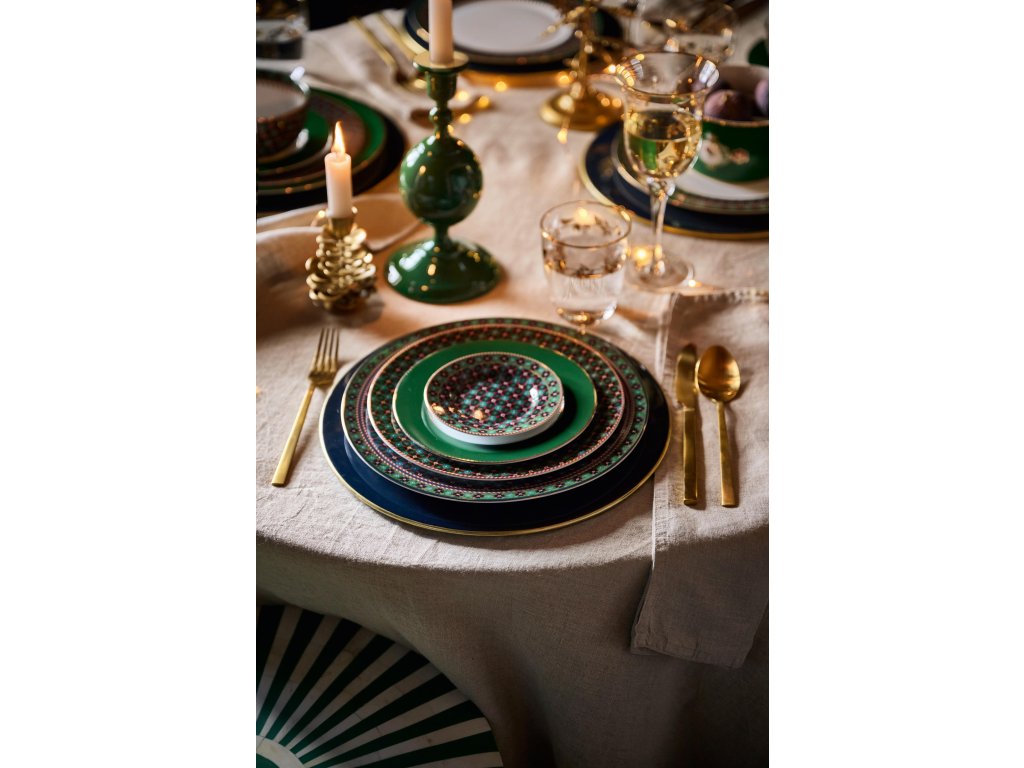 Talířek o průměru 12 cm zdobí zeleno-modrý dlaždicový motiv, který se objevuje i na dalších kouscích z kolekce — například na konvici, dóze či hrnečcích. Celá kolekce se navíc skvěle doplňuje s porcelánem Love Birds nebo Pip Chique Green. Pokud ovšem toužíte po osobité a originální kombinaci, zkuste kolekci La Majorelle . Slunečně žluté tóny se překvapivě krásně doplňuji s tmavě modrou kolekci Berry Blues a vytvářejí výrazný, ale harmonický celek. Dlaždicový motiv ve tvaru čtyřlístku dodává této kombinaci jedinečný dekorativní charakter.