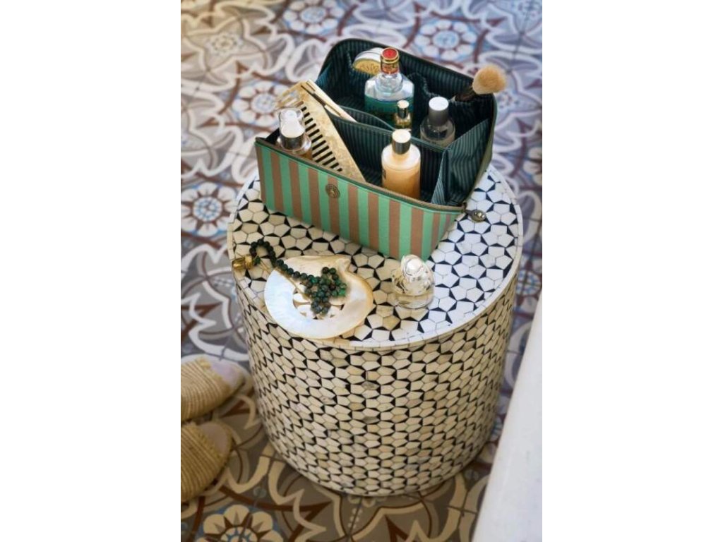 Kosmetická taška Cyrille Stripe Medium kombinuje eleganci a funkčnost. Praktická velikost 23,5x10,5x11cm z něj dělá každodenního favorita. Ideální pro cestování nebo jako veselý dotek ve vaší koupelně. Materiál: 50% Polyester, 50% Polyuretan Rozměr: 30x22x1 cmDoplňkové parametry