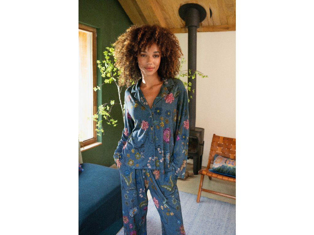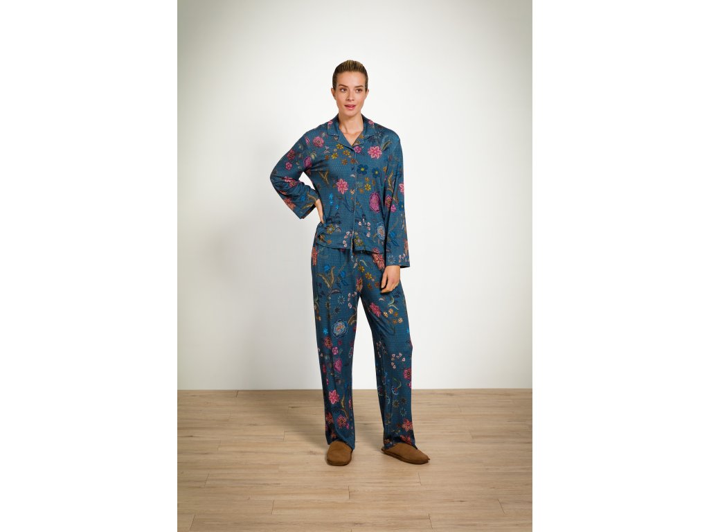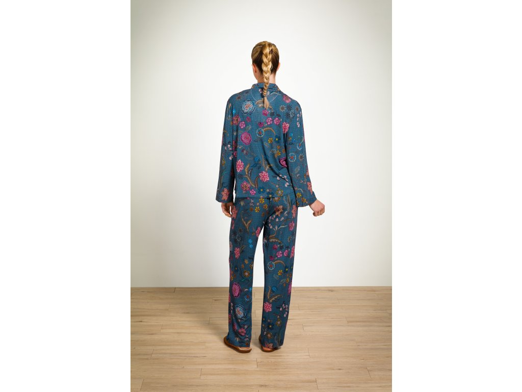 Pip Studio Dlouhé kalhoty Belin z kolekce Coco Flower kombinují komfort, styl a ležérní eleganci. Mají rovný střih a příjemnou elastickou gumu v pase, která zajišťuje pohodlné nošení po celý den. Volný střih je ideální pro domácí odpočinek i lehké aktivity. Jemná viskózovo-elastanová směs je měkká, hladká a prodyšná, což zaručuje dlouhotrvající pohodlí. Potisk Coco Flower tvoří ručně kreslené fantazijní květiny s drobnými tečkami a proužky, na pozadí jemný pruhovaný vzor. Kalhoty lze kombinovat s tričkem nebo kimonem ve stejném designu nebo s jednobarevným bílým tričkem pro svěží vzhled.