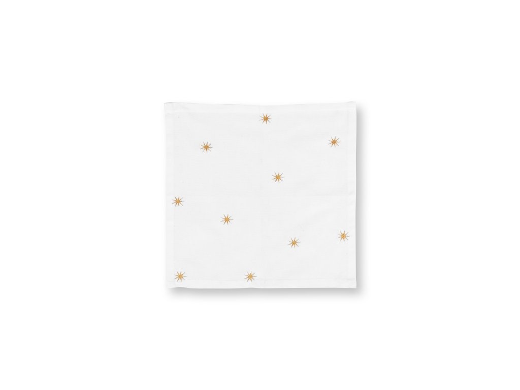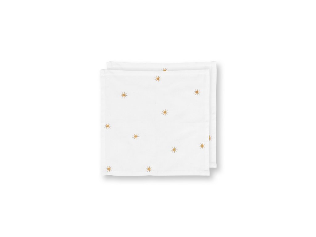 Sada 4 kusů ubrousků Pip Studio Dot Delight z bavlněno-lněné směsi se zlatou výšivkou hvězd. Velikost 40x40 cm.