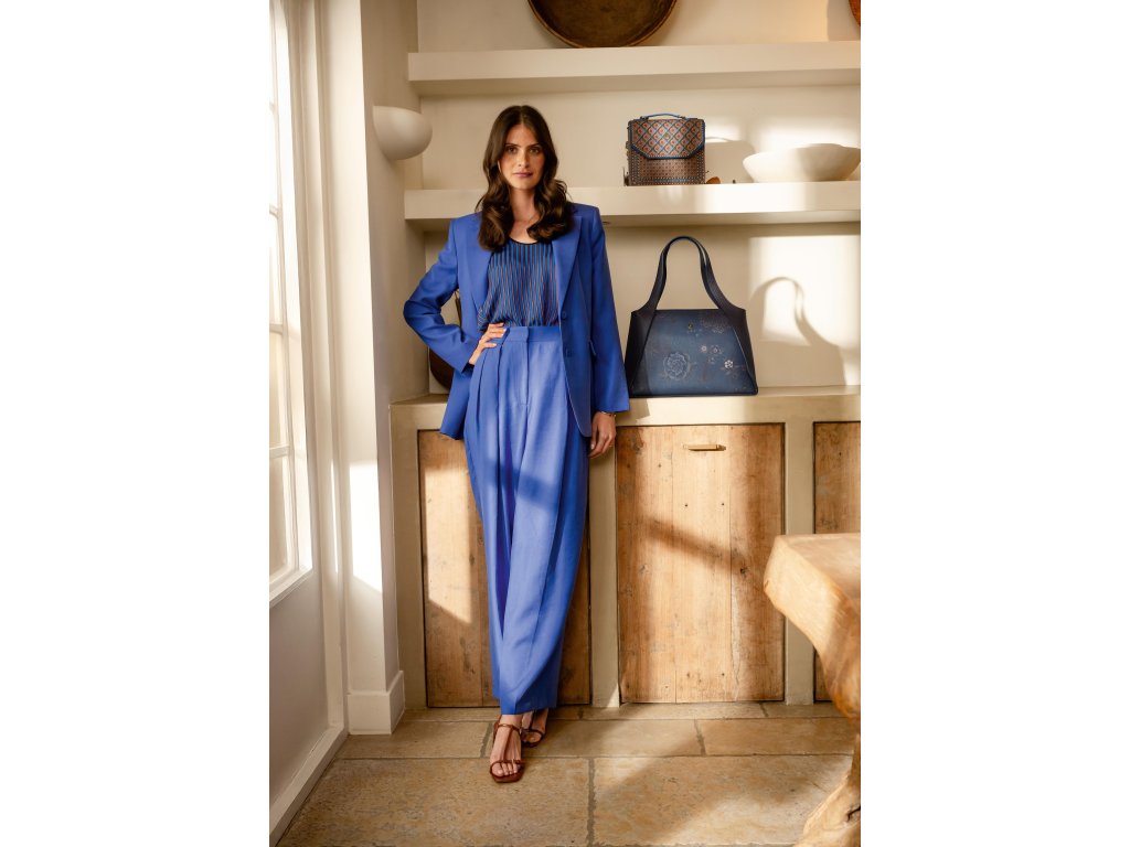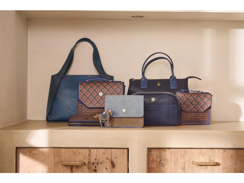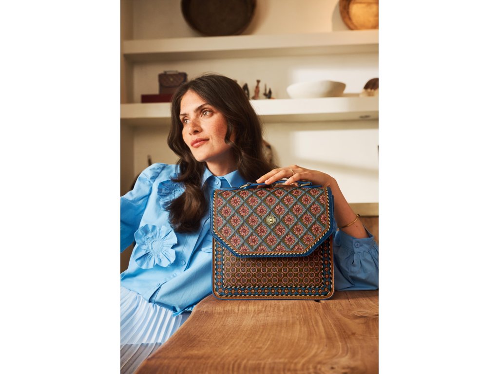 Design Imani je inspirován živými africkými vzory s geometrickými tvary a bohatou paletou barev. Hnědé, béžové a zemitě laděné tóny doplňuje sytá modrá, která kabelce dodává hravý a zároveň sofistikovaný vzhled.