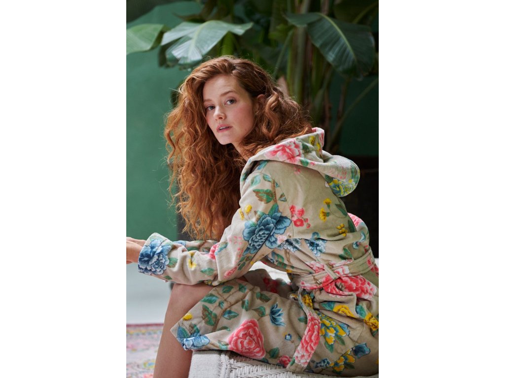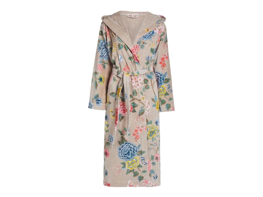 Měkký a savý bavlněný župan Pip Studio Good Evening v khaki odstínu. Luxusní froté s hustotou 600TC, střední délka a pásek pro dokonalé pohodlí každý den.
