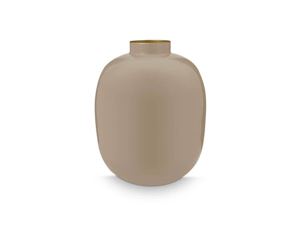 Kovová váza Pip Studio v khaki barvě, výška 32 cm. Oválná matná váza na květiny, dostupná v několika barevných variantách.