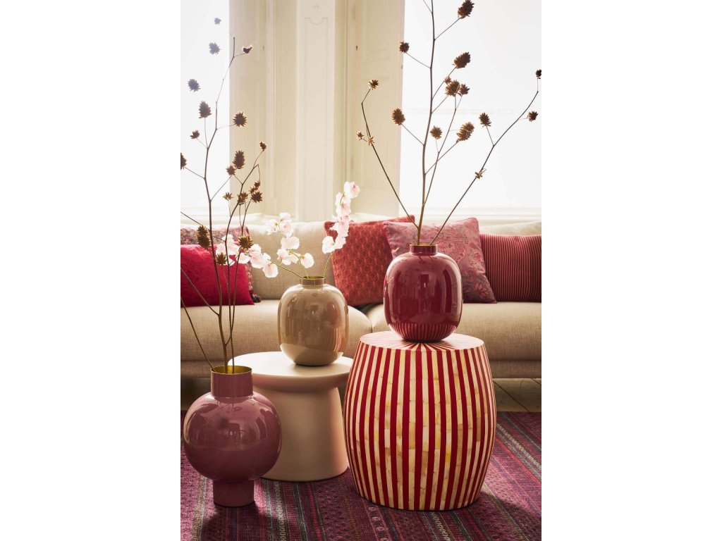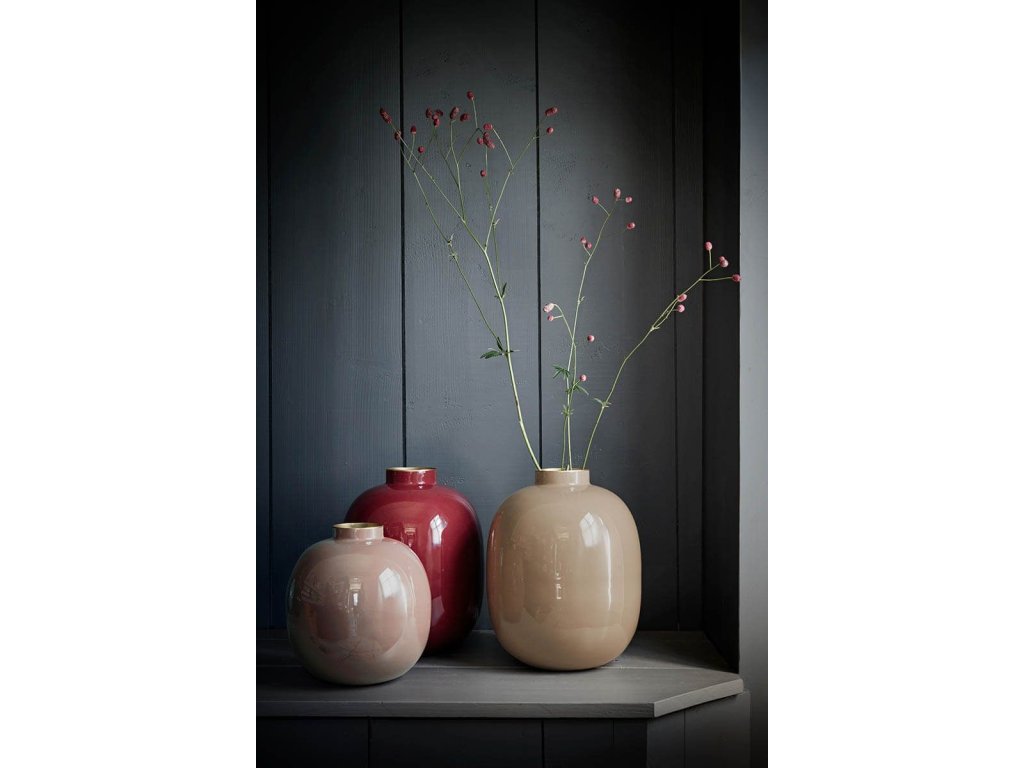 Dodejte svému domovu nádech elegance a barvy s touto kovovou vázou v temně červeném odstínu. Její sytý tón dodá interiéru teplo a hloubku, zatímco každý vložený pugét v ní vynikne s ještě větší krásou. A pokud toužíte po kompletní proměně interiéru, objevte celou naši kolekci – všechny kousky se k této stylové váze dokonale hodí.