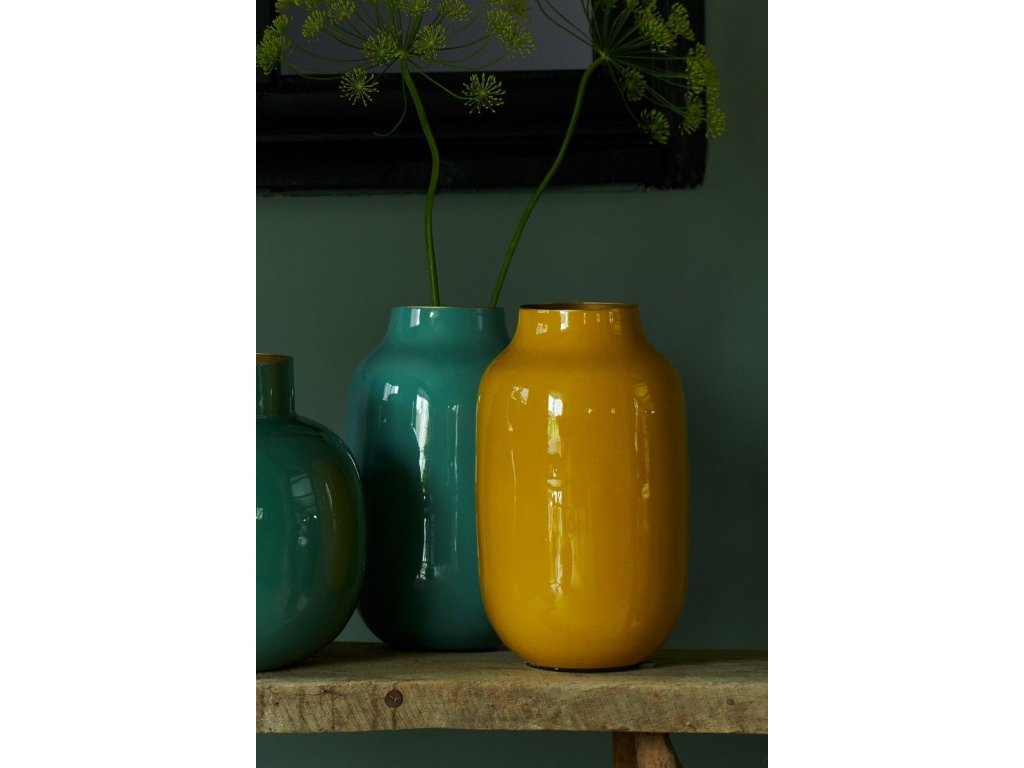 Vneste do svého domova sluneční atmosféru s oválnou kovovou vázou ve žluté barvě . Její zářivý a veselý odstín krásně podtrhne každou kyticí a promění ji v opravdový střed pozornosti. Váza působí elegantně i samostatně jako dekorace a dodá interiéru nádech tepla a sofistikovanosti. Pro ještě výraznější efekt ji můžete kombinovat s tmavě modrou variantou či kulatou verzí stejné barvy.
