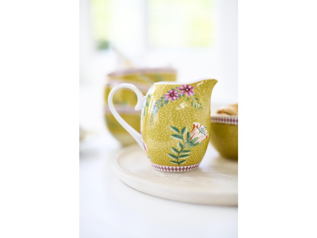 Porcelánová mlékovka Pip Studio La Majorelle Yellow s jemným dekorem a hřejivým slunečným odstínem. Kombinujte s ostatními kousky z kolekce pro dokonalý stolní servis.