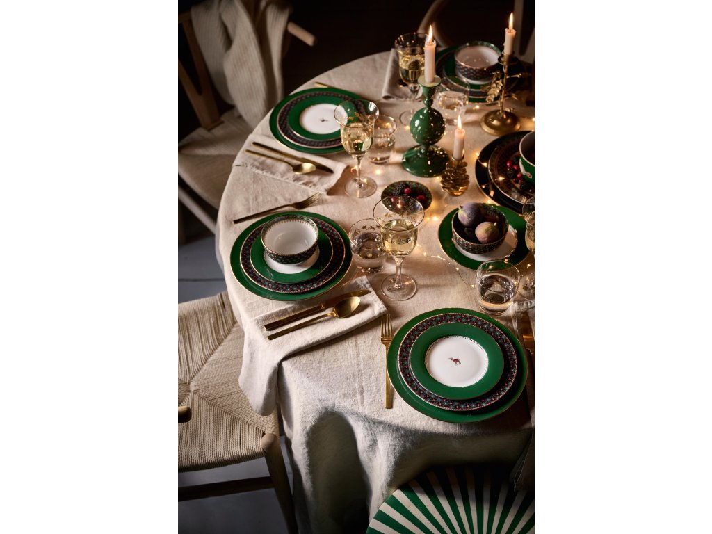Porcelánový talíř Pip Studio Love Birds Medalion Deer Green – tmavě zelený okraj se zlatými detaily a jemný motiv jelínka ve středu.