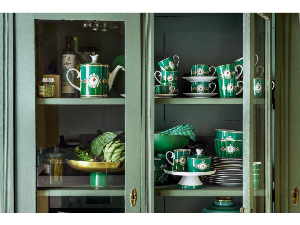 Hrnky v oblíbeném designu Love Birds zaujmou na první pohled. Kombinace zelených tónů, zlatých detailů a ikonického ptáčka vytváří romantický a nadčasový vzhled, který si zamilujete při každém doušku.