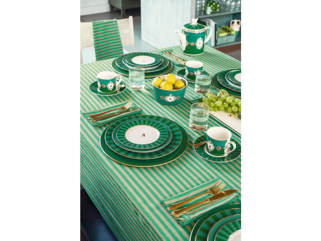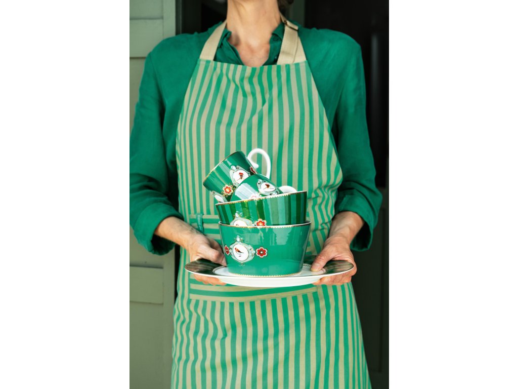 Pip Studio Love Birds Stripes šálek s podšálkem Green z nejoblíbenější kolekce Pip Studia kombinuje dva odstíny zelené barvy se zlatými detaily. Střed šálku zdobí typický motiv malého ptáčka, který dodává celé sadě osobitý půvab. Ideální pro stylové servírování kávy či čaje.
