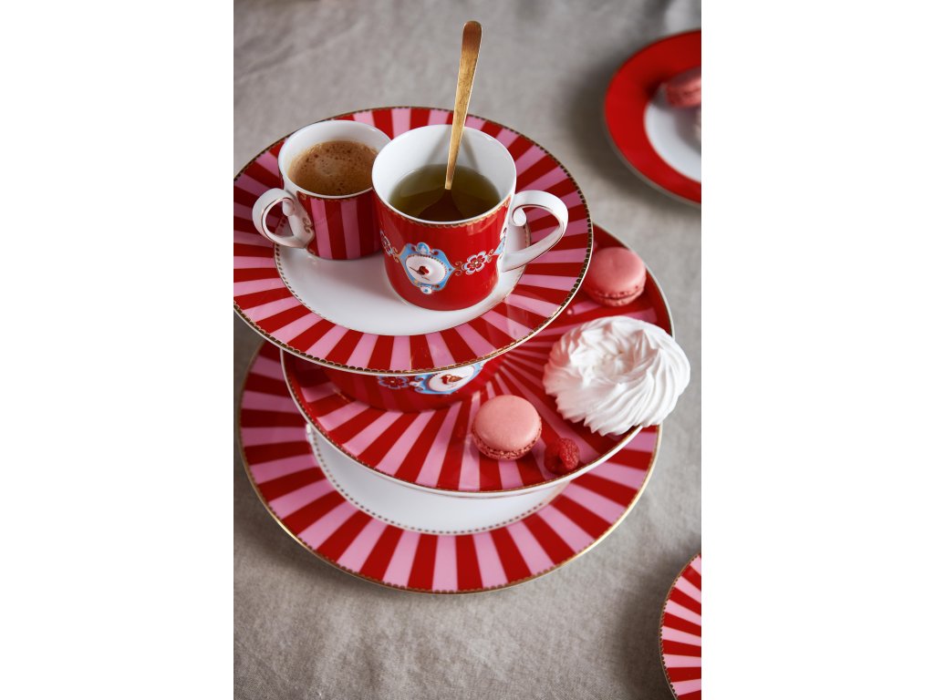 Červený porcelánový espresso šálek s podšálkem Pip Studio Love Birds Red s jemným zlacením – elegantní a stylový doplněk pro vaši kávovou chvíli.
