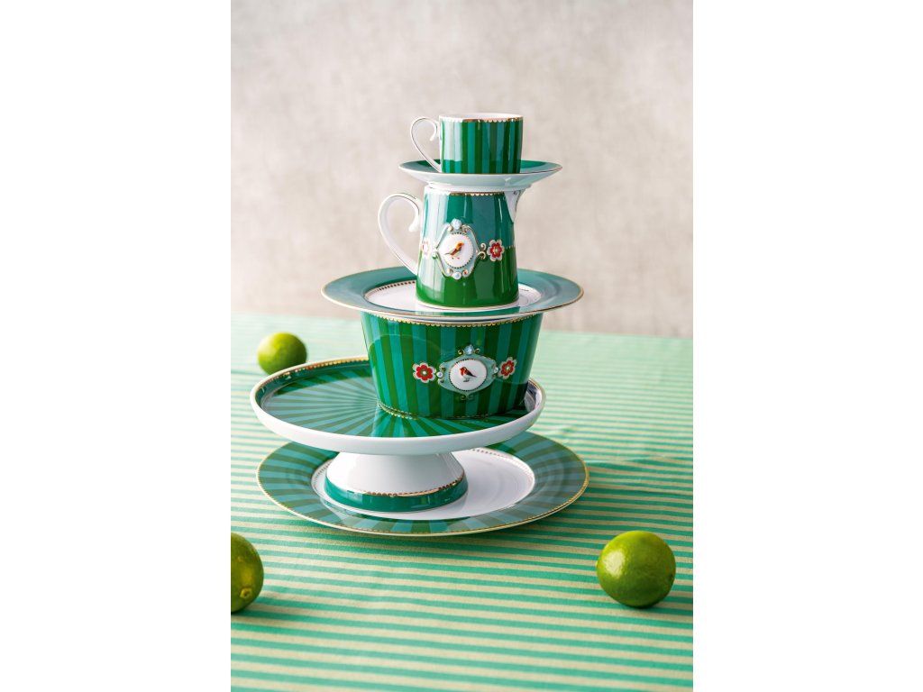 Pip Studio Love Birds Stripes sada na espresso 2 ks šálku s podšálky 90ml, zelená