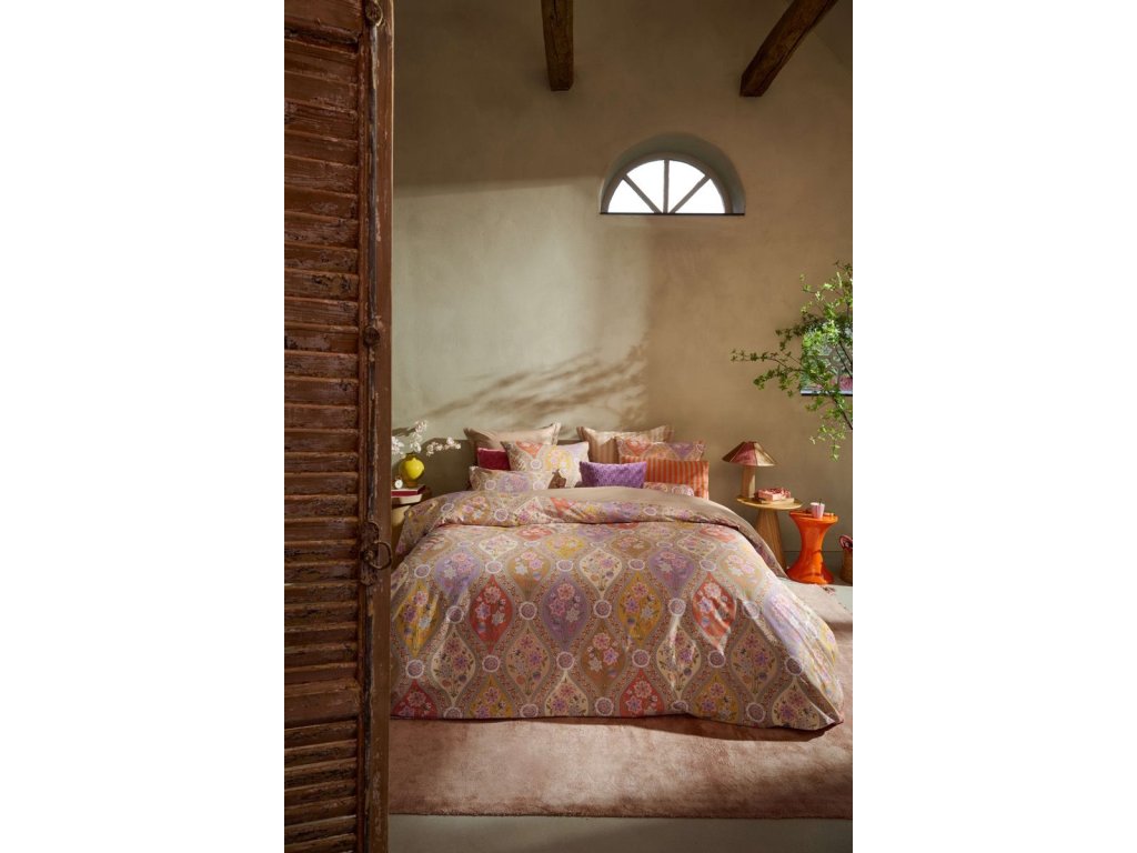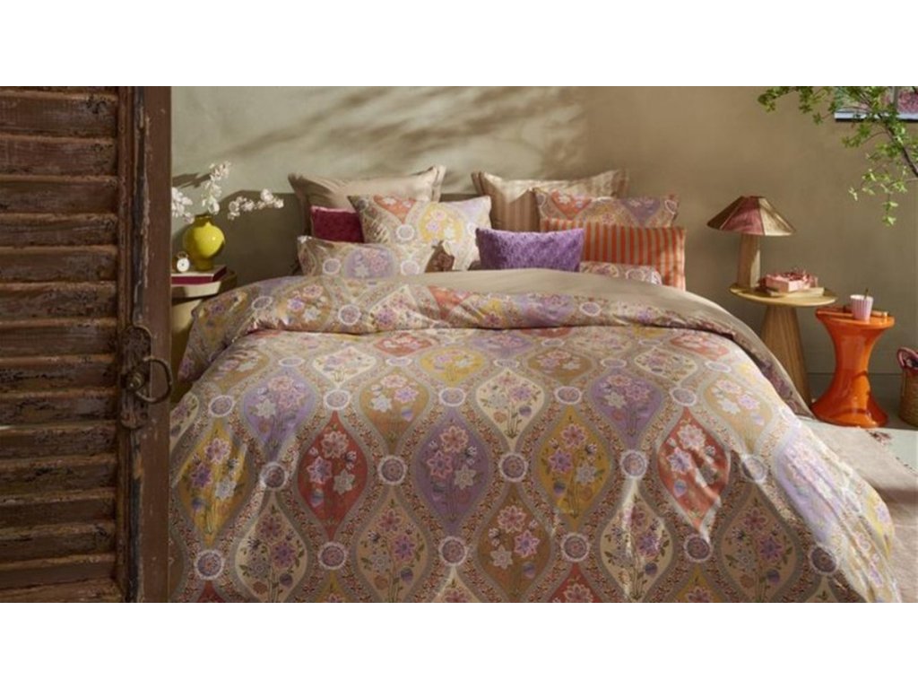 Pip Studio Ornamento Ramo – luxusní bavlněné povlečení s mozaikovým motivem a lotosovým květem v teplých tónech, inspirované španělským florálním stylem.