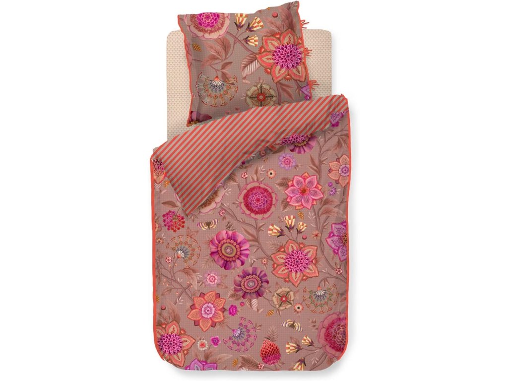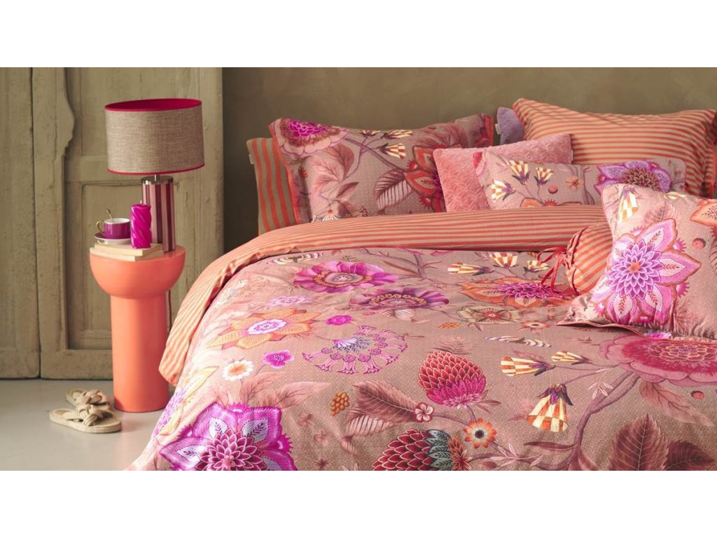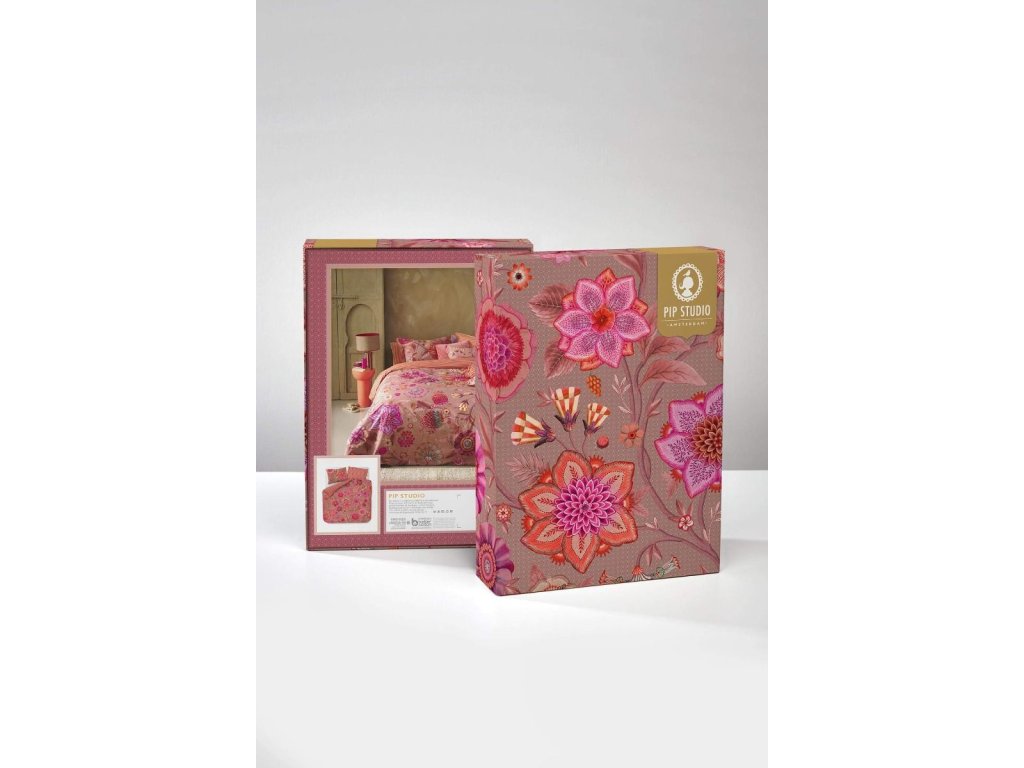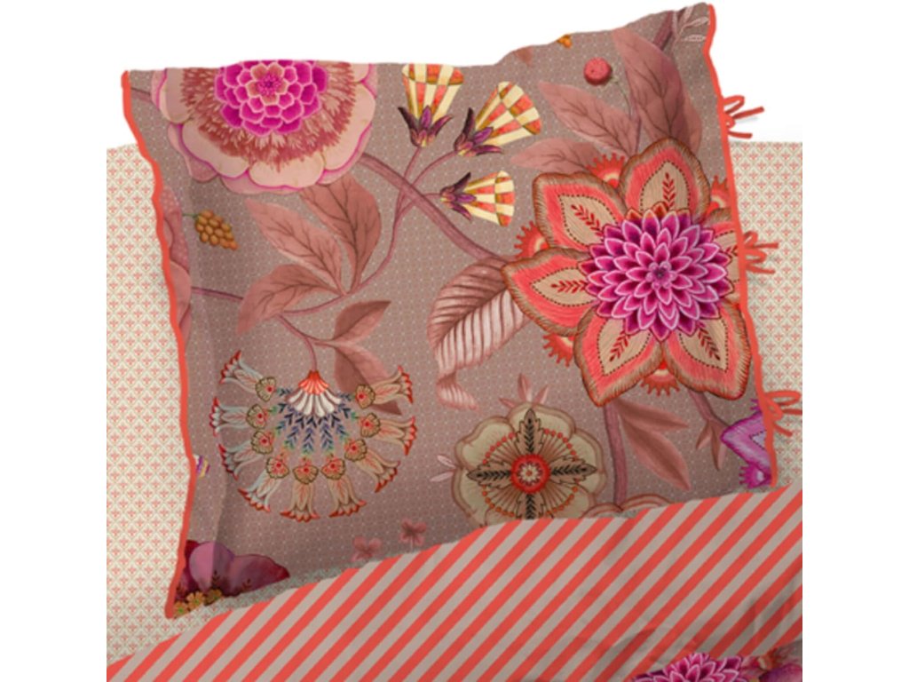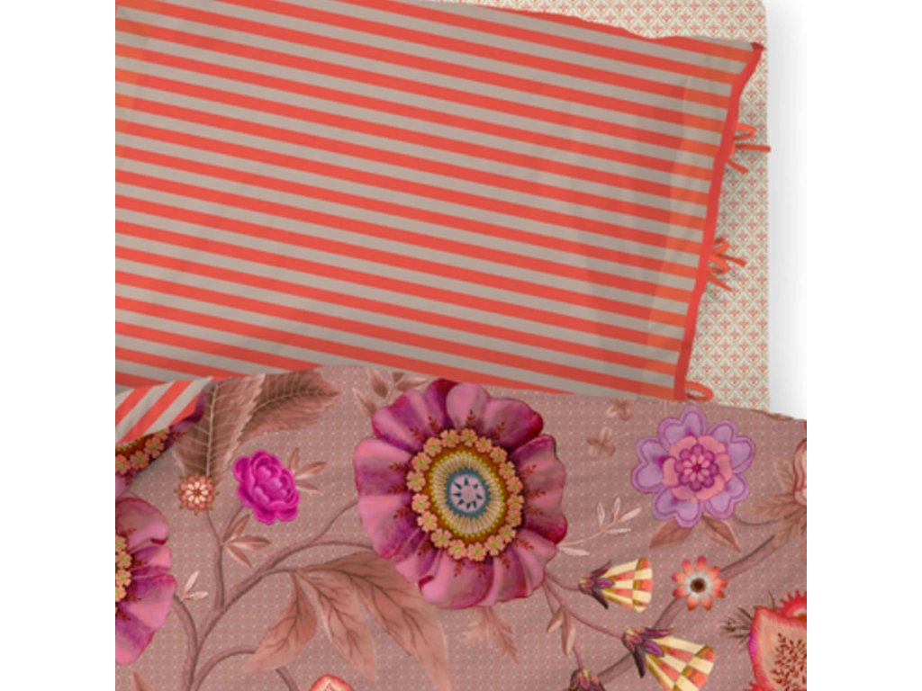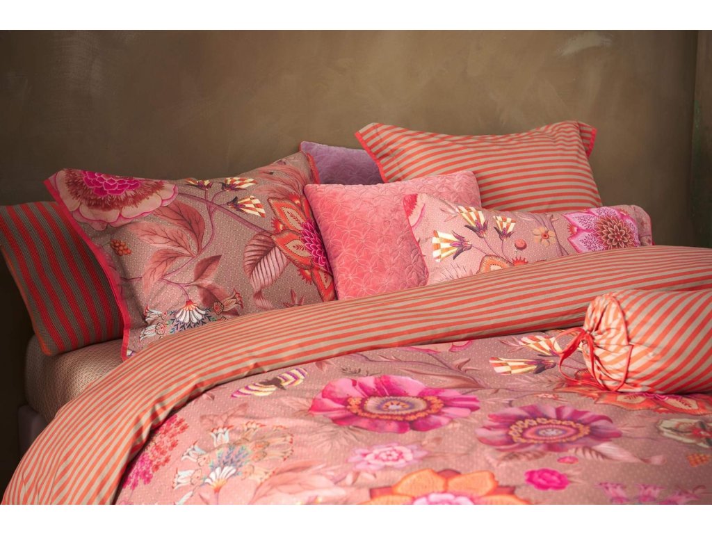 Pip Studio povlečení Viva La Vida je oslavou barev, života a radosti. Je nepřehlédnutelným klenotem ložnice. Velkorysé květinové motivy v extravagantních barvách propojují fantazijní růže, mučenky a jiřiny, inspirované bohatě zdobenými květinovými stěnami španělských měst. Přední strana hraje barvami a energií, zatímco zadní strana překvapí jemným pruhovaným vzorem, který umožňuje měnit atmosféru ložnice podle nálady. Luxusní lemování decentním kulatým paspolem dodává povlečení elegantní a precizní vzhled.