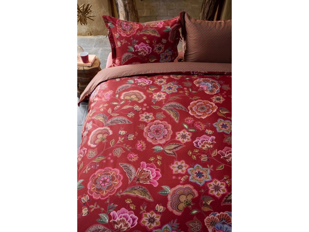 Exotické povlečení Pip Studio Matata Red z broušeného kepru s africkým motivem květů a teček – hebké, hřejivé a dokonale stylové. Dodáváno v dárkovém boxu.