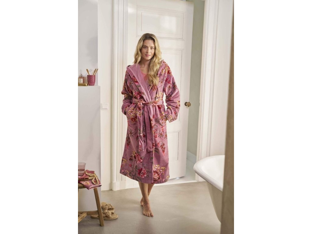 Luxusní župan Pip Studio Secret Garden v odstínu mauve. Elegantní střih s kapucí a páskem zaručuje pohodlí i styl – ideální pro každodenní relax.